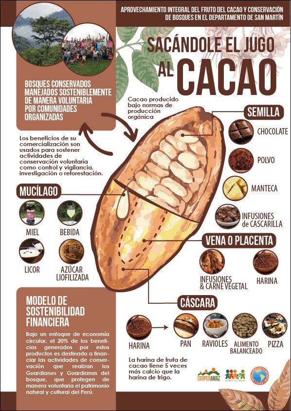 Infografía sobre el aprovechamiento integral del fruto del cacao.